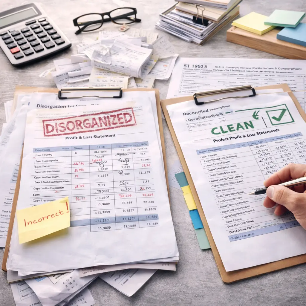 If your S-Corp books are disorganized or incomplete, we provide cleanup services to correct prior entries and reconcile inconsistencies before tax season.